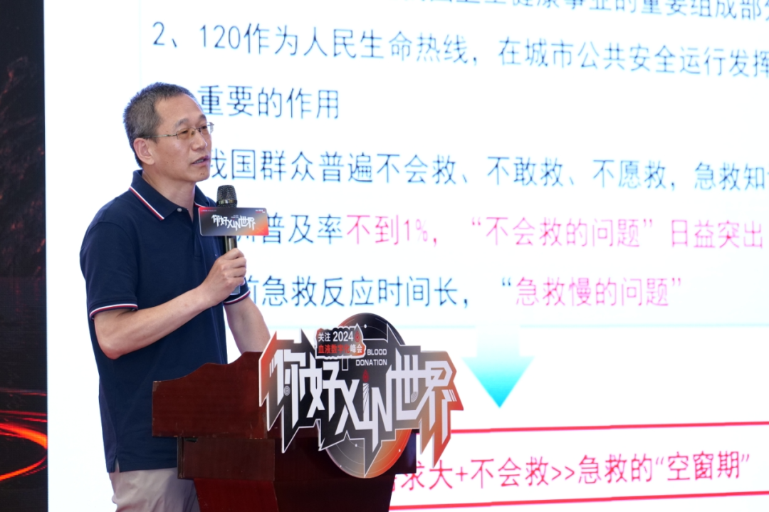 致辞结束,便开启了四位专家的热血XIN分享。来自北京交通大学计算机学院教授、博士生导师金一教授进行了《大模型与多模态智能》的专题分享。从大模型基础概念到最新技术进展,再到实际应用案例,都进行了详尽的介绍和阐述,让我们对大模型与多模态智能有一个清晰且深入的了解的同时,也看到了科技大模型在血液数字化领域的应用前景与潜力。有了大模型的新势能,也离不开媒体宣传的新动能。随后,来自吴聊传播创始人吴卫华先生呈现了一场生动且有深度的的专题分享——《从传播到行动:现代公益传播的新路径》。从公益传播认知的变迁讲到传播方式的变迁,从全国各地文旅的爆火讲到国外的冰桶挑战,再从新时代背景下公益传播新解法讲到私域+公域的共同赋能传播,为在场的所有人奉上了一场难得的公益传播理论实战课。血液作为重要的医疗资源,一直与生命救护相连,在本次峰会,还特别邀请到了北京急救中心科教办张进军主任为大家分享了《智慧急救》的专题。